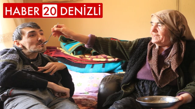 Denizli’nin Çivril ilçesinde 68 yaşındaki anne, hayatını adadığı bedensel ve zihinsel engelli oğlunu yıllardır bebek gibi bakarak büyütüyor.