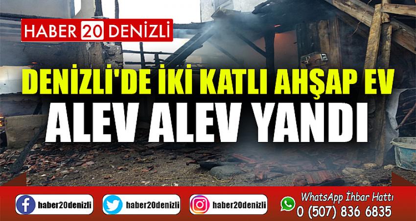 Denizli'de iki katlı ahşap ev alev alev yandı